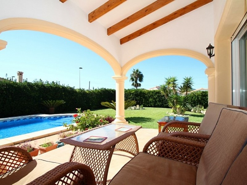 Продается изумительная вилла в Испании, которая расположена в северной части побережья Коста Бланка в городке Javea. Дом расположен на ровном участке площадью 1021 м2, на территории которого есть ухоженный сад с пальмами и собственным бассейном, размер которого составляет 10х5. Рядом с домом есть вся необходимая инфраструктура: в пешей доступности бары, рестораны, магазины и многое другое. Чтобы добраться до пляжа Вам понадобиться всего несколько минут езды на автомобиле.