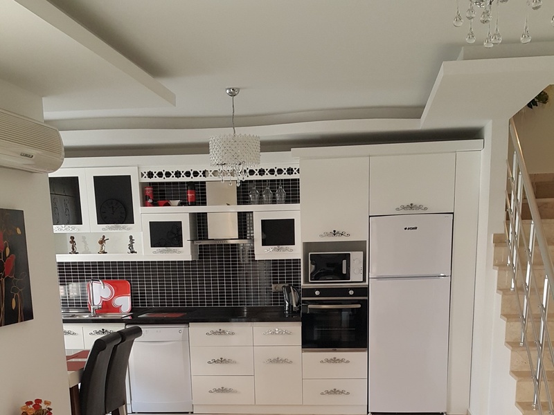Schöne Penthouse-Wohnung 3 + 1 mit Designer-Möbeln und allen notwendigen Geräten, nur 150 Meter vom Meer entfernt! Der neue Vorschlag von dem Sekundärmarkt in einem komfortablen Fläche von Alanya - Beides! Penthouse befindet sich am 3. und 4. Stock eines 4-stöckigen Gebäude mit einer Fläche von 130 m2. Es gibt auch einen Pool vor dem Haus !!!