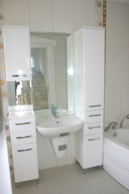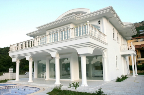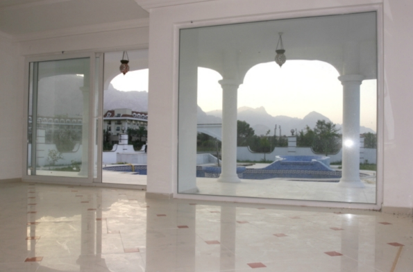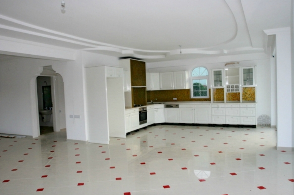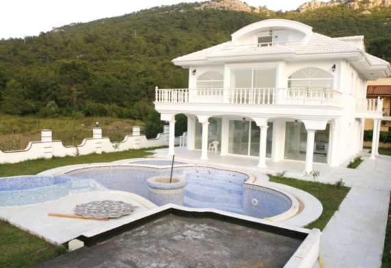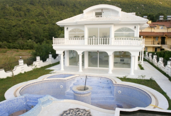 Total in the villa 6 bedrooms, 2 living, 5 bathrooms with shower cabins, baths, Jacuzzi and bathroom units in the cabin fireplace, kitchen + one of the saloons, installed in kitchen, gas and oven, extractor fan, table top is made of crystal glass, stairs to the floors are made of marble, 2 large terraces, one with views of the mountains on the floor, the other with access to the pool, on the ground floor of a Turkish bath, sauna and gym trainers.