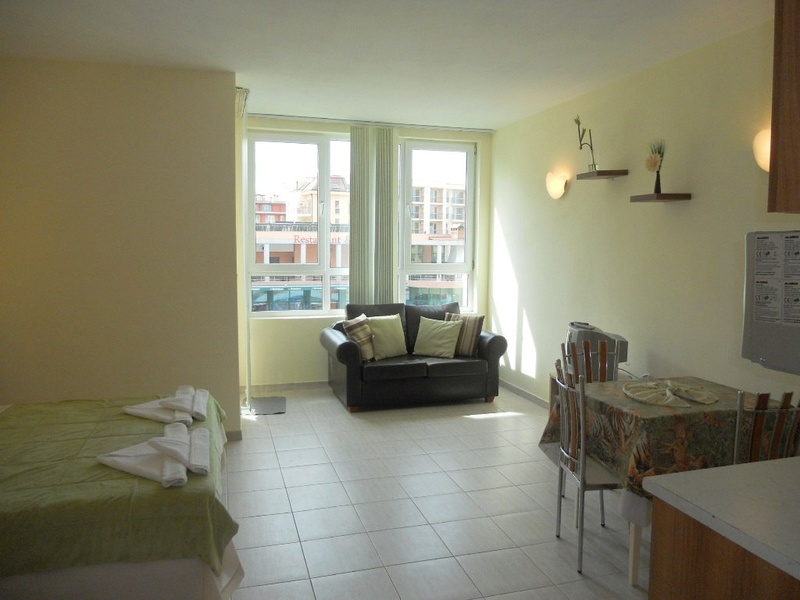Предлагаем Вашему вниманию апартамент типа „студио“ расположен в юго-западной части курорта Солнечный берег, в 300 метрах от моря и самого знаменитого пляжа Какао-Бич, что делает его одним из самых привлекательных мест для отдыха в летнее время на болгарском побережьем. Апартамент площадью 45 м2 и состоит из гостиной с кухней, ванной комнаты с туалетом и балкона. Поредлагается вместе с мебелью, полностью обставленный.