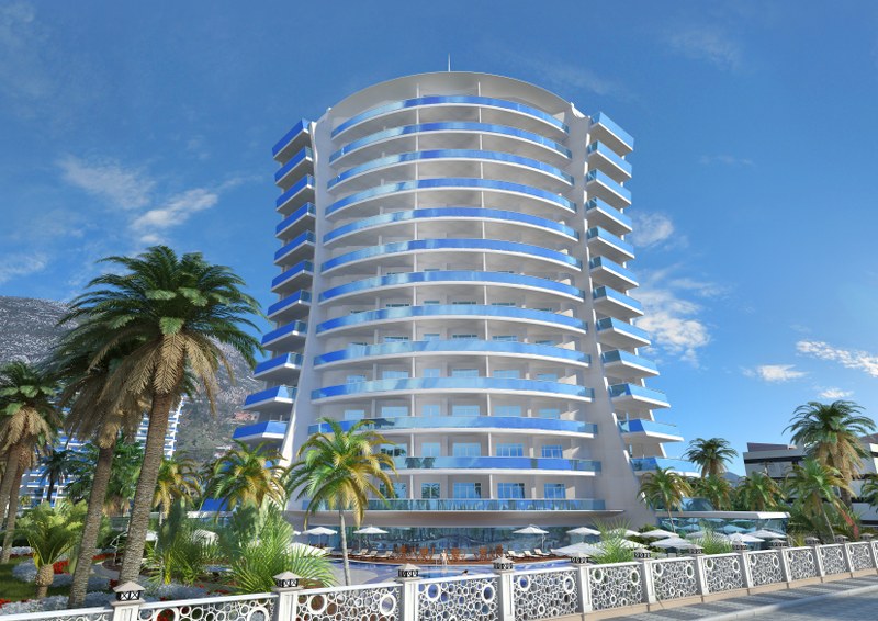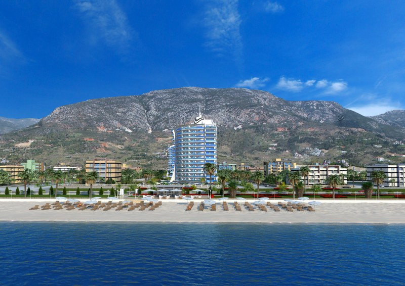 This luxurious project is built on the first line of Mahmutlar, where you will find complete peace just 25 meters from the Mediterranean Sea. Whatever you are looking for your holiday, for a long stay or rent your apartment can be found in this project. There are shops, restaurants, SPA-salons. The area around the project makes it possible to take a walk in the mountains or relax on the beach/