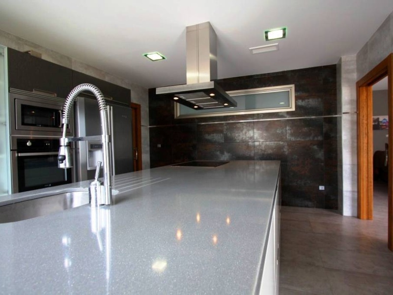 The house in near to the White Port in Calpe, and it consists of 5 spacious bedrooms, one of them in a grand suite and with a large dressing room, 5 bathrooms with tiles of high quality, designed kitchen, large living/dining room with modern fireplace , barbecue area and swimming pool with jacuzzi, garage, outdoor parking, barbecue.