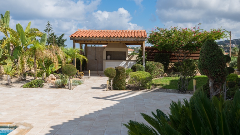 В задней части имущества есть большой бассейн 10м х 5м с гидромассаж-ной и крытая площадка для барбекю, где вы можете в полной мере насладиться роскошной средиземноморской жизни.