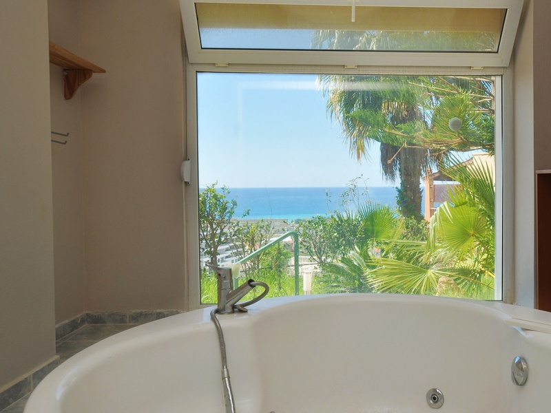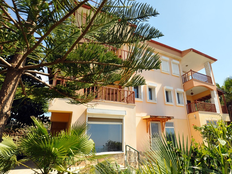 На трех этажах виллы расположены 7 комнат, 3 сан-узла, 4 балкона. Из всех комнат красивый вид на море и сад. Имеется отдельный гараж для машины.