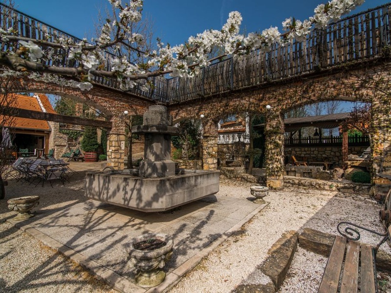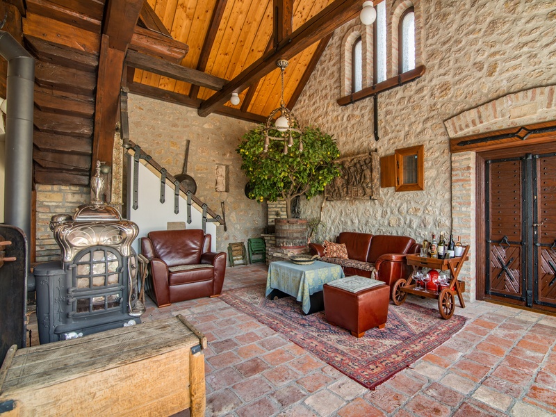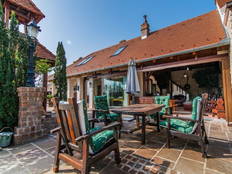 At Lesencetomaj near Lake Balaton, I offer for sale this extraordinary property. The area is located nearly 1,000 hectare and includes several buildings. It quietly gives to owners peace of mind after the hectic weekdays. It is not easy to summarize what this property offers. You can find here dwelling house on nearly 150 nm, guesthouse on 125 nm. The main house has 2 bedrooms, 2 bathrooms, kitchen, working room, living room, wardrobe and sauna, while the guest house has 3 more bedrooms, kitchen, two bathrooms and a living room as well. The two separate living units are connected by a covered promenade. You can aslo find a wellness part with 75 nm (with 2 huge rooms inside). In the property also situated terraced garden, authentic wine cellar, small viewpoint from which can be seen the Lake Balaton, fruit storage, children's playground, barbecue area, gazebo boardwalk, spice gardens, small fish-pond and orchard. During the construction only the highest quality materials have been used. The buildings prepared by Porotherm 38 bricks. The building doors and windows and insulating glazing made of wood. Entering the house a rustic-style furniture immediately reveal that the current owners took great care of each piece of the purchase, a few pieces of real art. The house is heating by gas circulating system, but solar collectors ensures the hot water for the building as well. The small porcelain statuettes, reliefs, mosaics, antiques, wells, taps, works of art all contribute to the good feeling. To discover all the details placed on the property, it would be a few weeks. The price basically not includes the furniture but negotiable. It will be a real experience when you come to visit this amazing property. The exact layout of some residential properties can be seen in our office or we can send it!