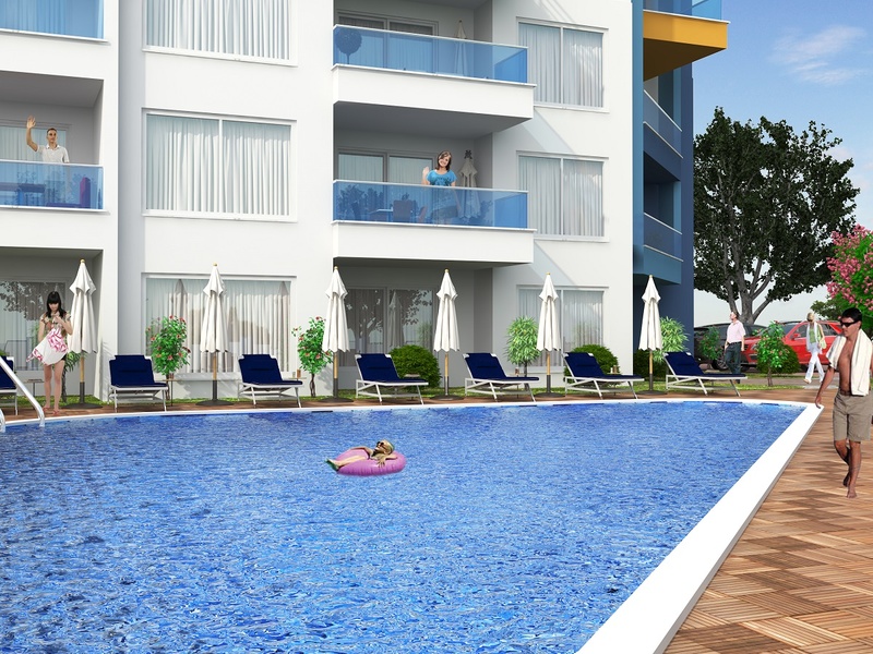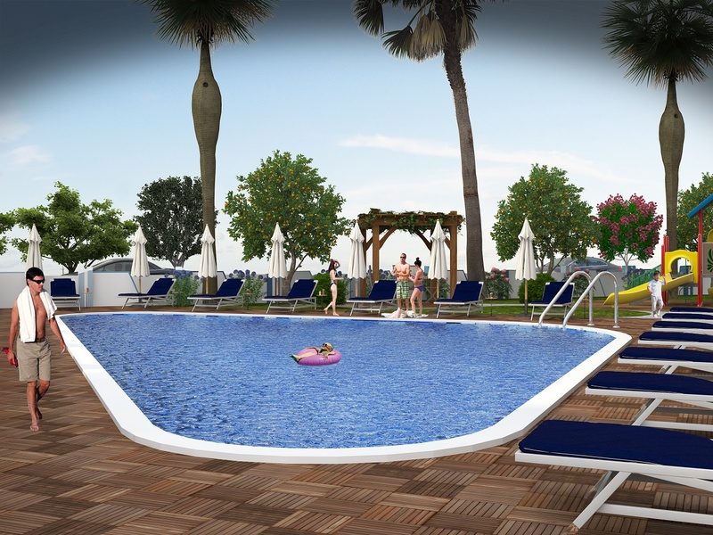 Каждый блок будет с собственным бассейном и террасой для загара, детской игровой площадкой, парковкой.