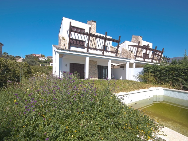 Neubau erste Line Golf. Modernes Reihenhaus -Villa. Hochwertige Verarbeitung. Die Villa verfügt über 291,33 m2 Wohnfläche mit einem großen Wohnzimmer mit überdachter Terrasse, Voll ausgestattete Küche, 4 Schlafzimmer und 4 Bäder, Master en-Suite mit Ankleide und Terrasse. Kellergeschoss mit Fenstern, Weinkeller mit eigenem Eingang. Grundstück von 402 m2 mit privatem Pool und Parkplatz für 2 Autos. Blick über den Golfplatz bis hinunter zum Meer. Finanzierung möglich.