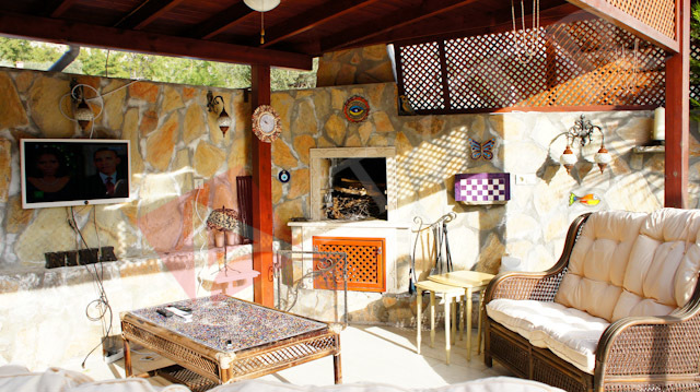 Fethiye, Gocek, Fantastic Villa, furnished, for sale with stunning view on the surrounding nature The Villa has a large garden with private pool, terrace and barbecue, where to live moments of pleasant relaxation. In the plot of 450 m2 there are several fruit trees and 60 pines The interiors, finished with class and elegance, consist of 4 bedrooms, 2 living rooms, kitchen, 3 bathrooms.