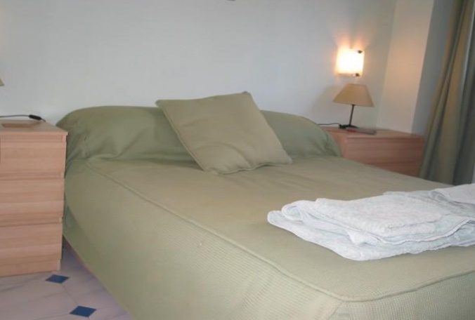 Carihuela - Paseo Maritimo - First line. Very bright apartment in Torremolinos, 2 bedrooms with fitted wardrobes. Lounge/dining room, 1 bath, air conditioning, kitchen. Swimming pool with community garden. Next to supermarkets, restaurants, schools, train/bus station, and all kinds of services. 1km from Puerto Marina Benalmadena. Private exit to beach promenade. Ground floor. Furnished.