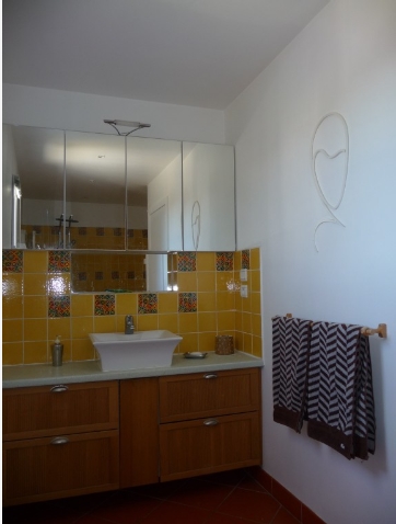 Im ersten Stock, Bad, Schlafzimmer mit (160x200) Meer und 40m2 Terrasse, ein Zimmer mit einem Doppelbett (200x210cm) und Meerblick, einen begehbaren Kleiderschrank und Zugang zur Terrasse und ein drittes Schlafzimmer mit zwei Einzelbetten (2x90x200cm).