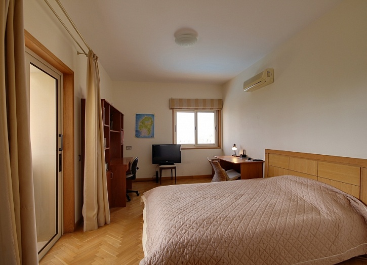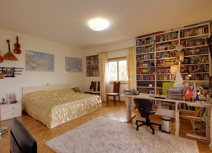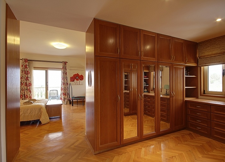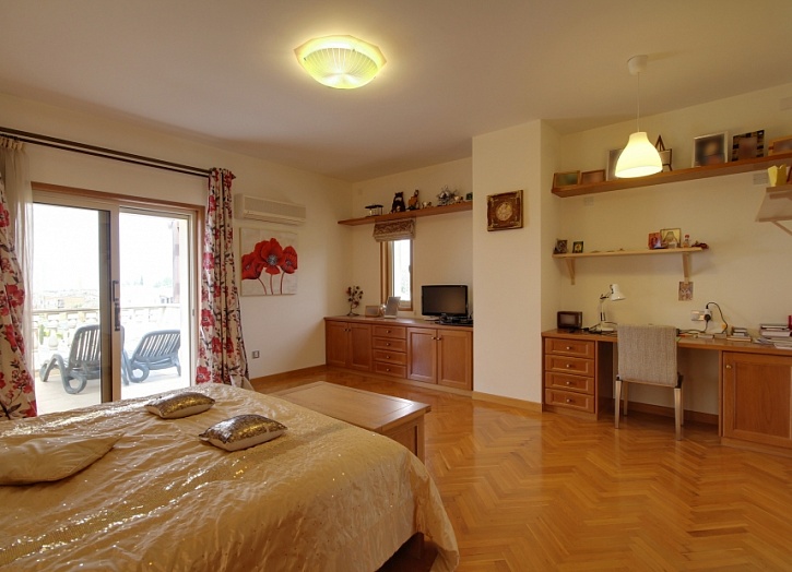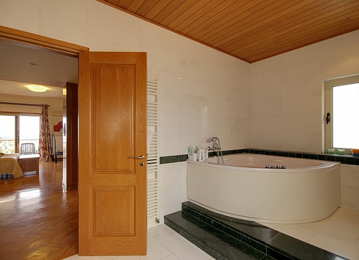 Просторная главная спальня имеет собственную ванную комнату, гардеробную и балкон, откуда открывается потрясающий вид на море, горы и живописные окрестности. Еще две спальни также имеют балконы.