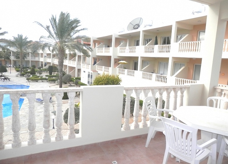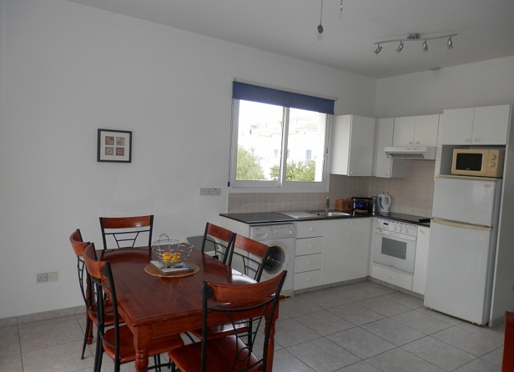 Апартаменты расположены на 2 этаже и состоят из открытого плана кухни, просторной гостиной с выходом на террасу с видом на бассейн и парк, ванной комнаты и двух спален. Квартире принадлежит просторная кладовка.