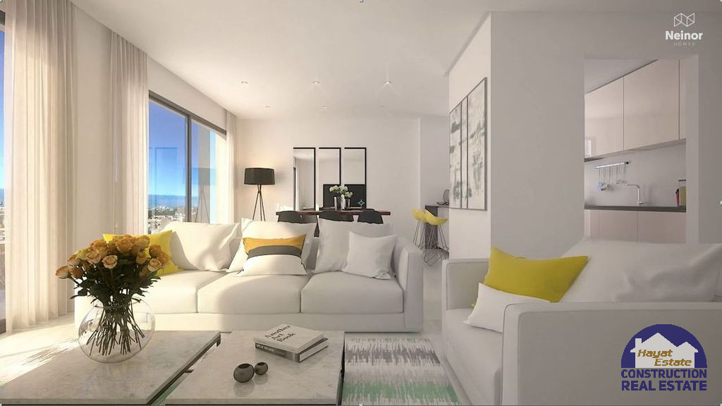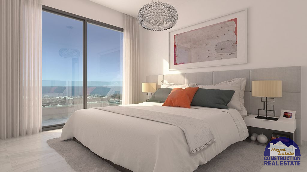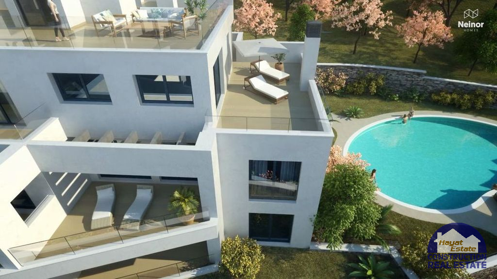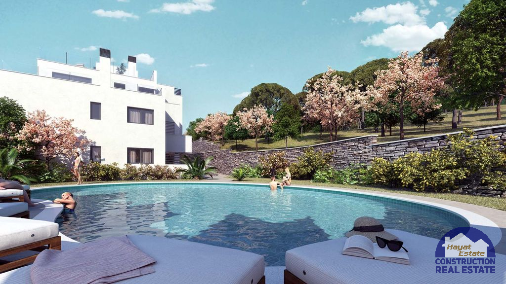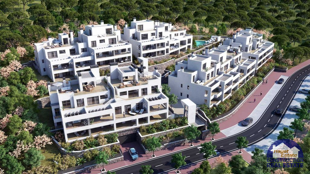 На первом этаже расположены апартаменты с садом и на верхних – пентхаусы с широкими террасами, 54 парковочных мест и 49 мест хранения (складские комнаты), кухни полностью оснащены самой новой бытовой техникой, где качество и дизайн занимают первое место. Большие раздвижные двери, просторные комнаты, которые полны света благодаря своей идеальной ориентации, усиленные входные двери безопасности, встроенные шкафы, кондиционирования воздуха с охлаждением и обогревом. Все это поставляется в комплекте с бассейном, обеспечивающим максимальный уровень удовольствия и релаксации для его жителей!