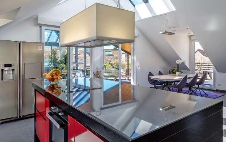 Schöne geräumige 2-stöckige Appartement Typ Penthouse in einer luxuriösen Residenz, im Herzen des berühmten Ferienortes Thonon-les-Bains, am Südufer des Genfer Sees, etwa 30 Minuten. Fahrt von Genf. Alle notwendige Infrastruktur in der Nähe (Einkaufszentren, Restaurants, öffentliche Verkehrsmittel).