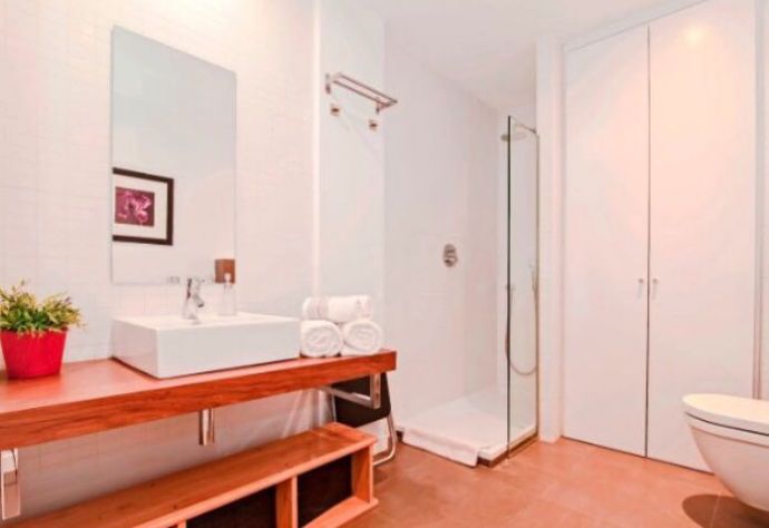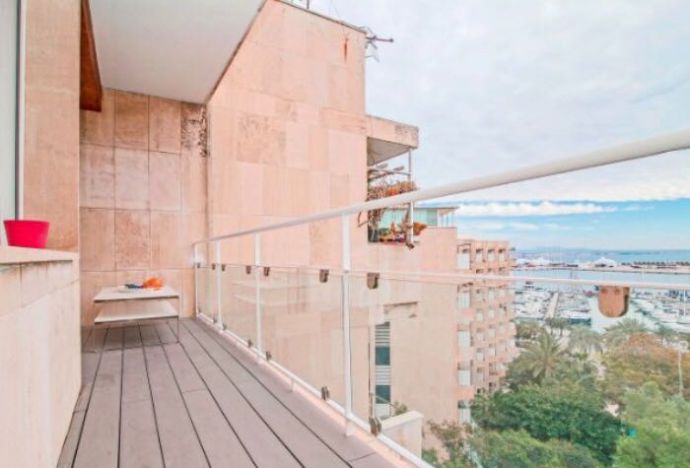 Schönes Apartment mit einem der schönsten Aussichten von Palma. Es verfügt über 65m2 aufgeteilt auf 1 Schlafzimmer mit einer offenen Küche, 1 Schlafzimmer, 1 großzügiges Badezimmer und Balkon mit Sicht auf den Hafen. Das Apartment wird möbliert vermietet mit einem Stellplatz für ein Pkw. Ausblick: Fernblick, Meerblick Einbauküche Böden: Parkettboden Zustand: gehoben, gepflegt, renoviert Ausstattung: luxuriös, neuwertig Voll klimatisiert Personenaufzug