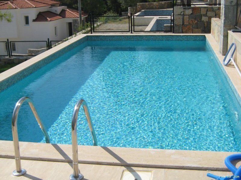 Возле каждой виллы есть по отдельному,собственному бассейну 35 кв.м. и терраса из камня