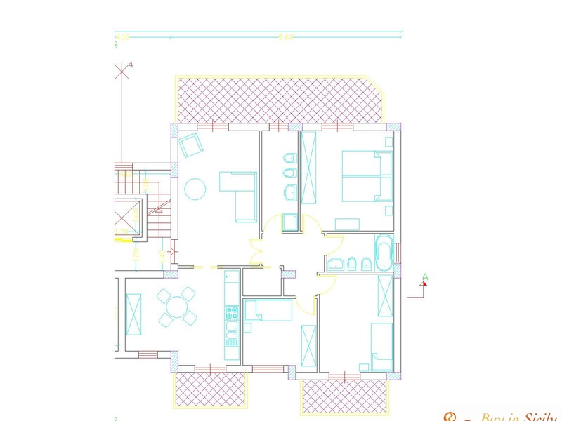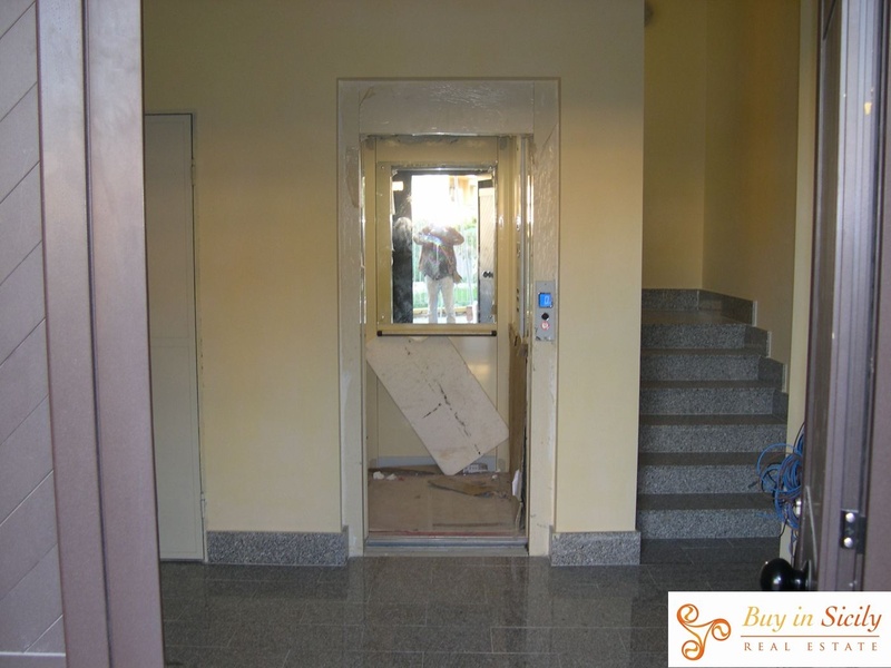 Lift, thermal coating; thermal shutters; water tank mc 15, boiler and heating system. Green area with games for kids within fenced area. The apartment is new construction, the works ended in the 2012. For further information and photos see www.buyinsicily.com