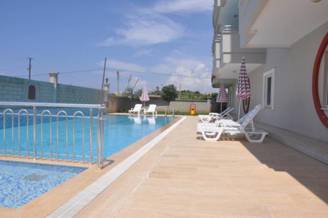 3-х комнатная квартира в комплексе в 500 метрах от моря. Инфраструктура комплекса включает открытый плавательный бассейн, бассейн для детей, фитнес-зал, сауну, электрогенератор для бесперебойной подачи электроэнергии, лифт, пожарную лестницу, ухоженную зеленую территорию, парковку. Так же в комплексе проживает консьерж, к которому всегда можно обратится по любым вопросам. Одним из преимуществ комплекса является частный пляж, на который будет возить сервисный автобус по расписанию, а также привозить с пляжа. Квартира расположена на 3-м этаже 7-ми этажного комплекса. Фасад на юго-восток и северо-восток. В квартире, общей площадью 115 кв.м., 2 спальни, просторная гостиная комната, совмещенная с кухней, санузел, коридор.
