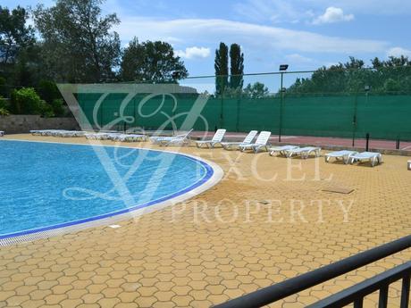 Команда Эксель Недвижимость предлагает вам прекрасную возможность для мудрых инвестиций в Солнечном береге в комплекс Сани Бийч Хилс. Квартира на первом этаже с общей площадью 81 квадратных метров, имеет два балкона, один с видом на один из бассейнов, пригодных для солнечных ванн. Квартира состоит из прихожей, двух спален, ванной комнаты, два балкона и гостиной с кухней. Есть большой раскладной диван с журнальным столиком и плазменным телевизором против него, обеденный стол с шестью стульями и мини-кухней. Существует полный пакет электроприборов со встроенной духовкой, плитой с вытяжкой, холодильником и стиральной машиной. В одной из спален есть двуспальная кровать с прикроватными тумбочками, шкаф и туалетный столик. Оттуда есть доступ в другую меньшую террасу, которую является приятным и затененных в течение дня. Во второй спальне есть две односпальные кровати с прикроватными тумбочками и гардеробом, снова с выходом на большую террасу. Ванная комната полностью оборудована всем необходимым, плитки находятся в хорошем ярким цветом, есть бойлер и ванна. Есть три кондиционеры в квартире. Комплекс находится в очень хорошем состоянии и находится в отличном состоянии. Она идеально подходит для проведения летних каникул там и арендную плату.