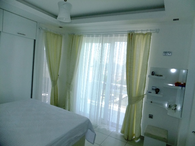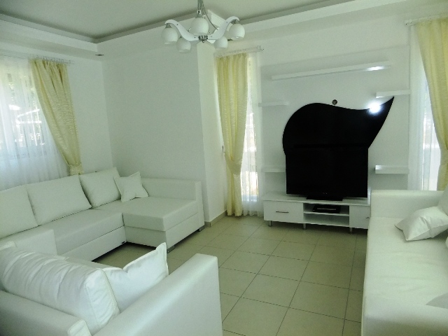 This modern villa in Fethiye on the Mediterranean Sea is ideal for a holiday home or for permanent residence. Calis is a small resort with great views (and spectacular sunsets) across the bay on the island Sovalye and Fethiye. Along the promenade there is a pedestrian boulevards, where there are many bars and restaurants. Relaxed atmosphere makes it the perfect place in the sun for a family holiday. in Calis there are water sports, including windsurfing, water skiing and scuba diving. There is also a water park with pools, slides and entertainment. Boat trips, trips to Dalian and mud baths, paragliding from Babadag Mountain in Olu Deniz-Blue Lagoon. Aeroport Dalaman is a 45-minute drive away.