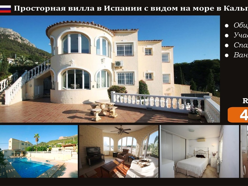 Price reduction from 400 000 €! Spacious villa in Spain with sea views for a large family in Calpe (Costa Blanca). Total area: 220 m2 Plot: 800 m2 Bedrooms: 5 Bathrooms: 4 Sea View: Yes Distance to sea: 2.5 km Lot: CLP151007 PRICE: 380 000 ...