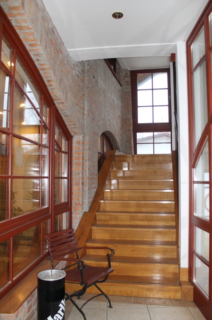 Три этажа, верхний не законченый. Первый и второй этаж для 160 человек. На обоих этажах есть бар стойки. На первом этаже место для живой музыки и для танцев.