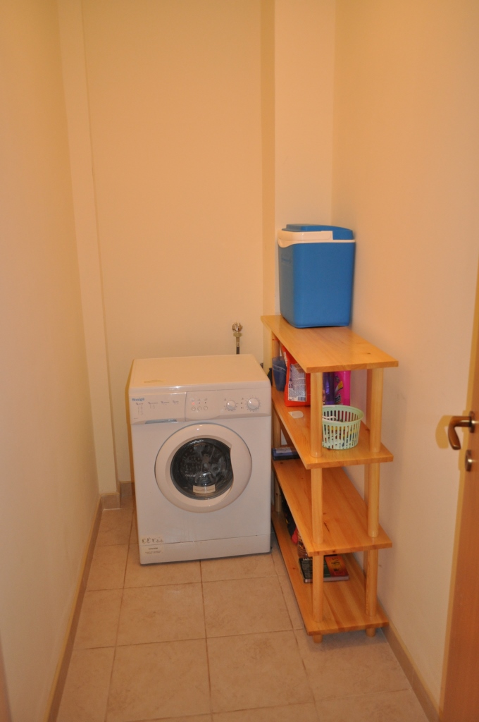 Гостиная с кухонным боксом , небольшая комната для хранения со стиральной машиной.