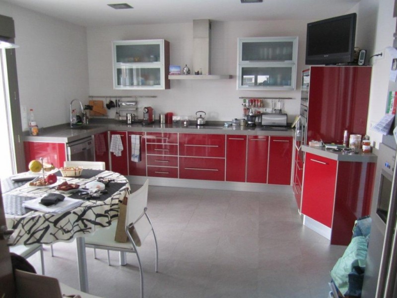Вилла состоит из пяти спальных и шести ванных комнат, отдельной, полностью оборудованной мебелью и техникой, кухни, просторного и светлого салона, нескольких террас. Дом обустроен дизайнерской мебелью, установлена система кондиционирования воздуха, оконные роллеты, полы из натурального дерева и мрамора. В саду система автоматического полива.