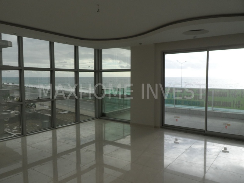 Главной особенностью данной квартиры является ее уникальный панормный вид на море, а огромные окна от потолка до пола, создают ощущение того, что вы находитесь посредние открытого моря.
