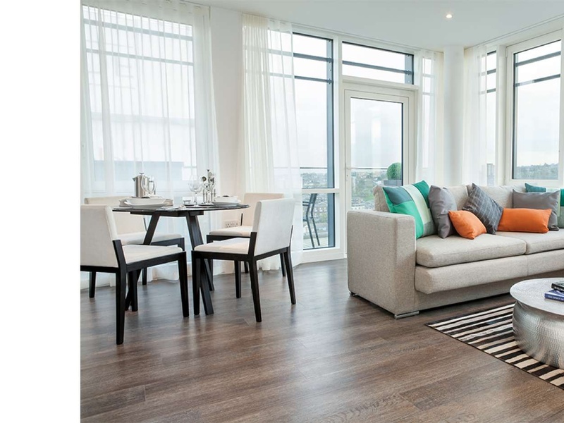 В комплексе продаются роскошные квартиры с 1- 3 спальнями, студии и пентхаусы. Все апартаменты очень стильные и современные, с большими балконами и террасами,  с изумительным панорамным видом на Темзу и внутренние сады комплекса с высоких окон.