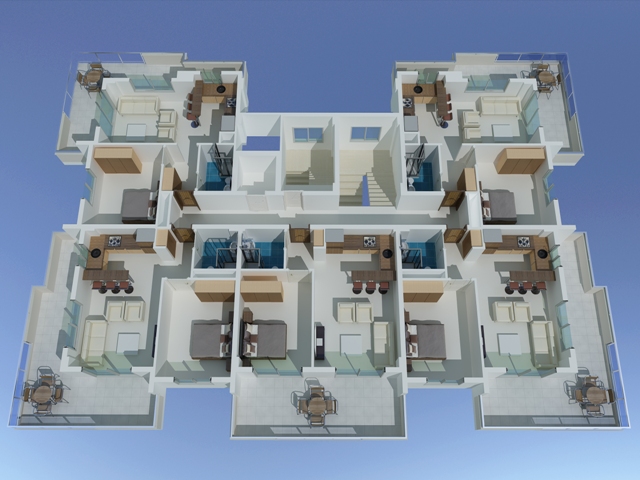 На продажу выставлены апартаменты 1+1 (спальня, гостиная с совмещенной кухней, ванная комната, балкон), а также пентхаусы 2+1 (2 спальнями, гостиная с совмещенной кухней, ванная комната, балкон).