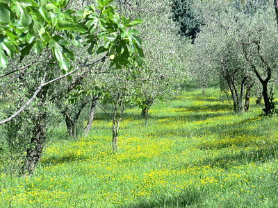 Das Grundstück rund um das Haus beträgt ca. 6.000qm. Mindestens die Hälfte davon ist vor allem mit Olivenbäumen bepflanzt. Es gibt auch einige Obstbäume. Die andere Hälfte des Grundstückes wird teilweise durch typisch mediterrane Kiefern und Tannen geprägt.