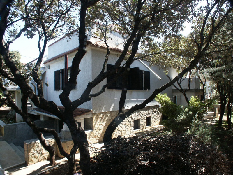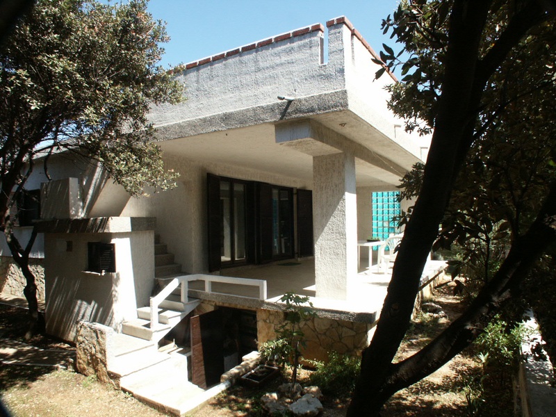 Family house (high ground floor), fool furnished,173m2 of living space plus 147M2 of terraces and water-storage reservoir, total 320m2 built on 484m2 parcel, 250m from beach, two bedrooms, 40m2 of living room with big open fireplace, 40m2 of gallery with beds, kitchen, bathroom/WC, shower/bath/WC, 40m2 of cellar space and more. Built for living over all seasons, heating on wood, ceiling fans in all rooms, local water-supply and electrification. Solid and strong construction (bricks, reinforced concrete, wood, ceramics, parquet), grill and 4 parking places. First owner and clean papers.