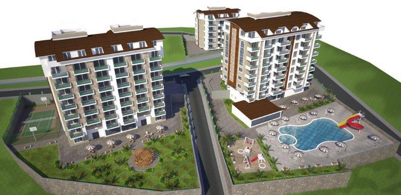 The complex consists of 3 blocks of 7 floors, and has a total of 104 apartments, including studios, one-, two- and three-bedroom apartments. The complex has many different luxurious facilities for your maximum comfort. The crystal clear water and clean beaches are the highlight of the area. Here you will also find good places for relaxation in the forest near the famous beach "Incekum".