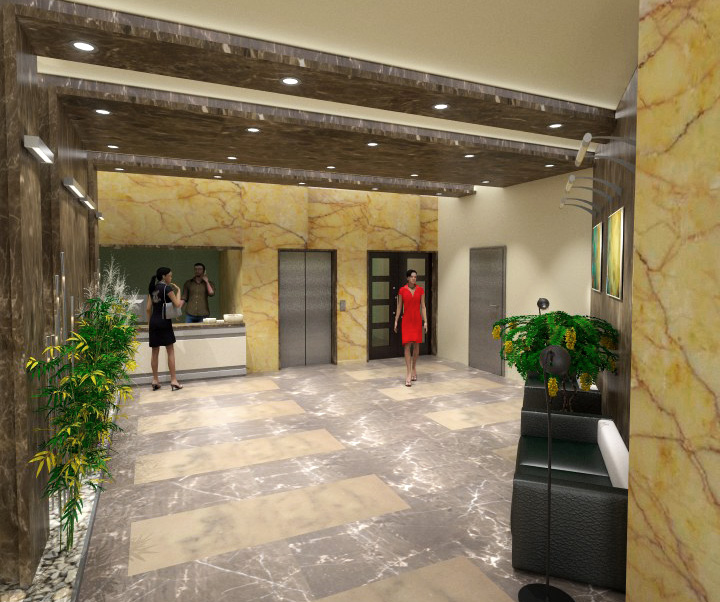 Общие части - люкс - полностью закончена с плитками на полу, штукатурки и краски стен и потолков.
