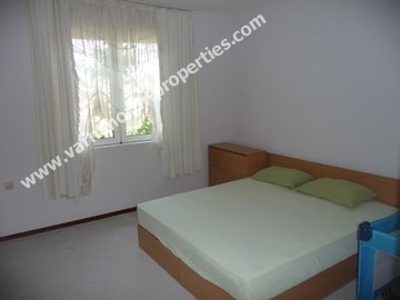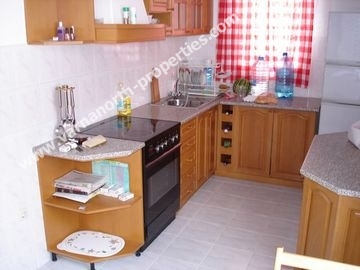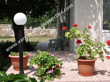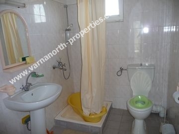 Дом, РПЗ-192кв.м – 2-х этажный с подвалом и с чердаком. Строительство выполнялось с апреля по ноябрь 1998 г. болгарской строительной фирмой по индивидуальному проекту. Подвал имеет отдельный вход с улицы. Освещение в подвале и на чердаке – естественное и электрическое. Дом построен для круглогодичного проживания, отопление – напольное, электрическое. В гостиной имеется дровяной камин, а в двух комнатах возможна установка печки. Стены - из “красного” многопустотного кирпича (наружные стены толщиной 1.5 кирпича), перекрытия – монолитные, железобетонные с тепло- и гидроизоляцией, штукатурка (основная) цементно-песчаная, наружная (уличная) - декоративная из белого цемента, цоколь здания и терассы отделаны натуральным камнем.. Крыша покрыта керамической черепицей. Отделка дома – высококачественная. Стены в кухне и в туалетах отделаны кафелем, в гостиной на стенах - “жидкие” обои, в остальных помещениях стены окрашены водоэмульсионной краской. Полы в кухне, кабинете, туалетах, холле, прихожей, на лестнице и в гардеробной – напольная керамическая плитка, в других комнатах – ковровое покрытие. Все межкомнатные и входная двери на 1-ом этаже и в туалетах – массивные, цельнодеревянные по индивидуальному заказу с остеклением и без. Окна и двери на балконы и на террасу – пластиковые, с однокамерным стеклопакетом.