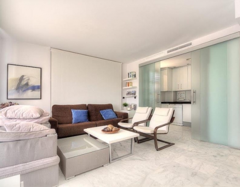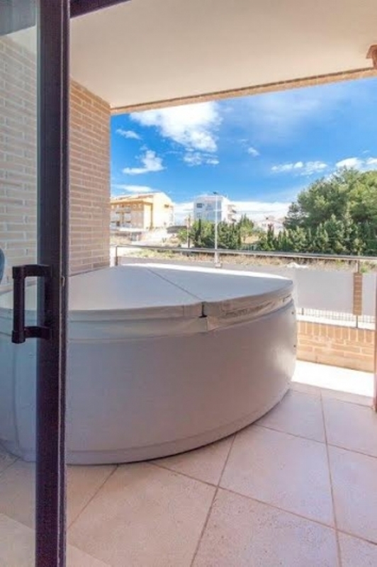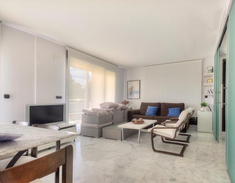 DETAILS: stylish living room-dining room, separate fully fitted kitchen, marble floors, jacuzzi on the covered terrace, 25 m2, electric shutters, central heating, air conditioning, satellite TV. The price includes furniture, appliances, 1 parking and storage room in the parking lot.