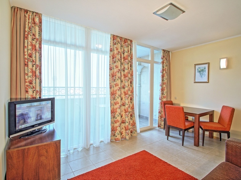 От одного вида фасадов комплекса дух захватывает, их оформление - дело известного болгарского архитектора Дамова, в них сочетаются элементы Европы и Азии. Прогуливаясь по территории комплекса, Вы быстро осознаете сколько времени и усилий потрачено на дизайн и оформление территорий общего пользования с их великолепными водными сооружениями, покрытыми декоративным булыжником аллеями и богатством зелени.