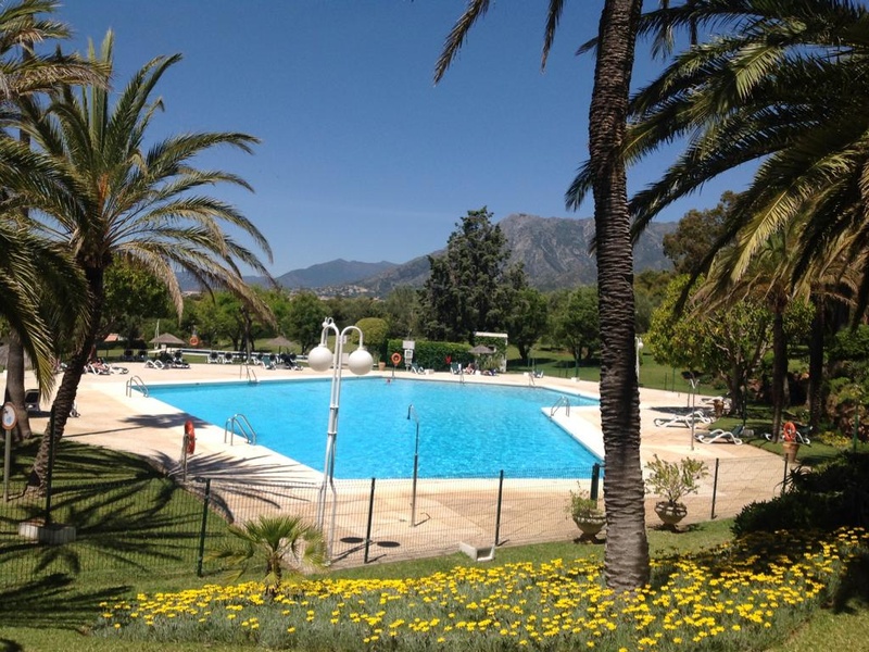 120 qm Wohnung möbliert Meerblick bis Gibraltar Nähe Golfplatz Los Monteros Nähe Playa del Pinillo - Marbella Wohnungsaufteilung: 1Schlafzimmer 1x großes Wohnzimmer mit offenem Nebenraum 1x Bad 1x WC 1x Küche 1x großer Balkon Garage Tennisplatz Grill im Garten 2x Pool 3x Aufzüge 2xPortier und Gärtner
