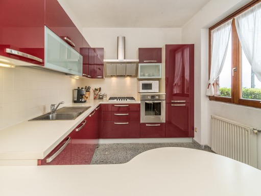Das Gebäude wurde 1996 erbaut, im Jahr 2006 komplette renoviert und erstreckt sich über 3 Etagen. Im Erdgeschoss befindet sich der Eingang, ein großer Wohnraum mit Panoramafenstern zum See und die Wohnküche; in der ersten Etage liegen drei Schlafzimmer und zwei Bäder, während die Mansarde eine Suite mit Bad und begehbarem Kleiderschrank beherbergt. Im Souterrain finden wir die Waschküche, den Keller, einen Abstellraum und eine Doppelgarage.