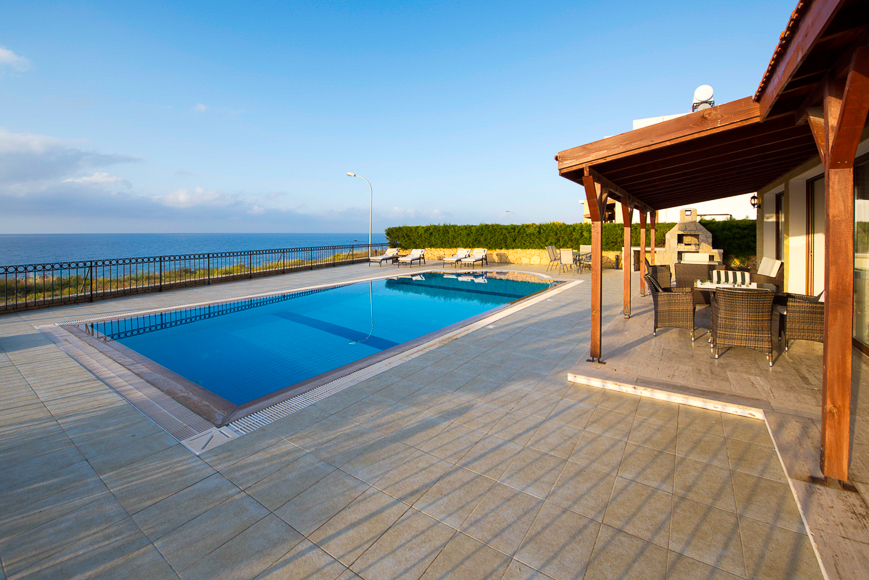 Это современная 3-х спальная вилла с видом на море и частным бассейном. Имеет 6 спальных мест.  Расположена в тихом месте с панорамным видом на море, в нескольких минутах ходьбы от пляжей и местных достопримечательностей. Есть две спальни с двуспальными кроватями (одна с собственной душевой комнатой) и одна спальня с двумя односпальными кроватями. Есть отдельная семейная ванная комната. Во всех комнатах имеются кондиционеры. Терраса у бассейна т оснащена встроенным бакбекю, вторая  терраса находится на крыш. Недавно установлен большой плазменный телевизор со спутниковыми каналами и WiFi.