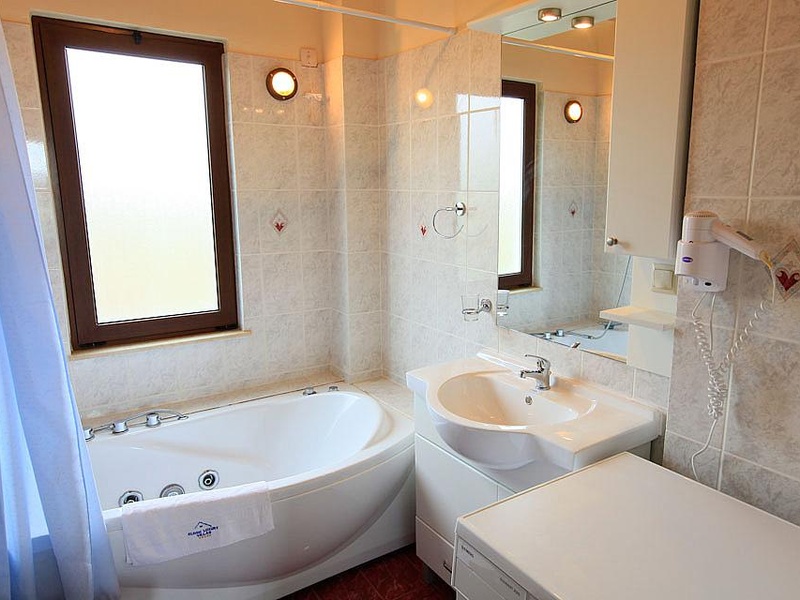 On the first floor is a double bedroom and a large bedroom with double bunk beds (suitable for 4 children), along with a large family bathroom. A door leads out to a private terrace with the mosaic tiled pool and sea views.The living room has comfortable sofas, WiFi Internet, Satellite TV, DVD player, ornamental fire place and valuables safe.The kitchen features: full oven, cooking hob, fridge/freezer, microwave, dishwasher and washing machine.Villa Melina has 3 air conditioned bedrooms: