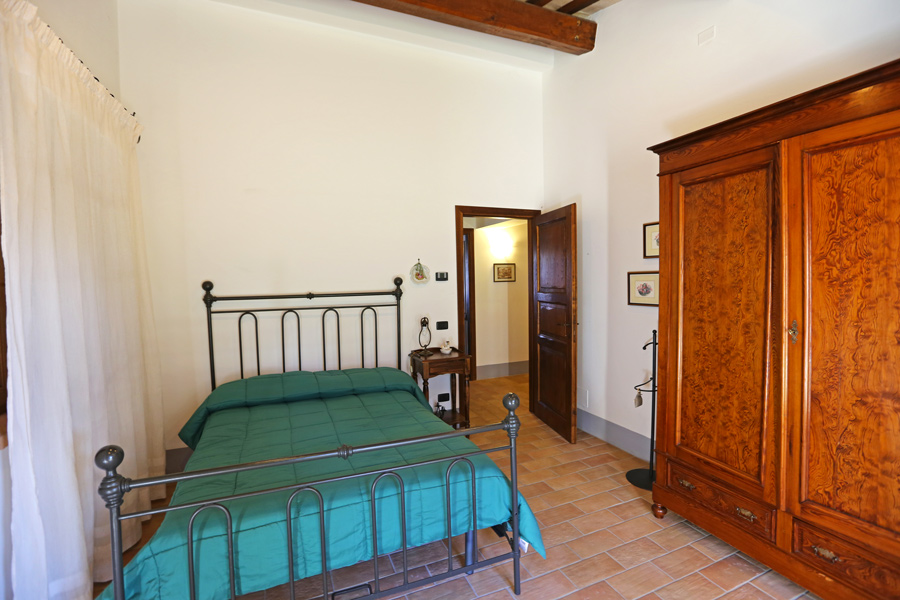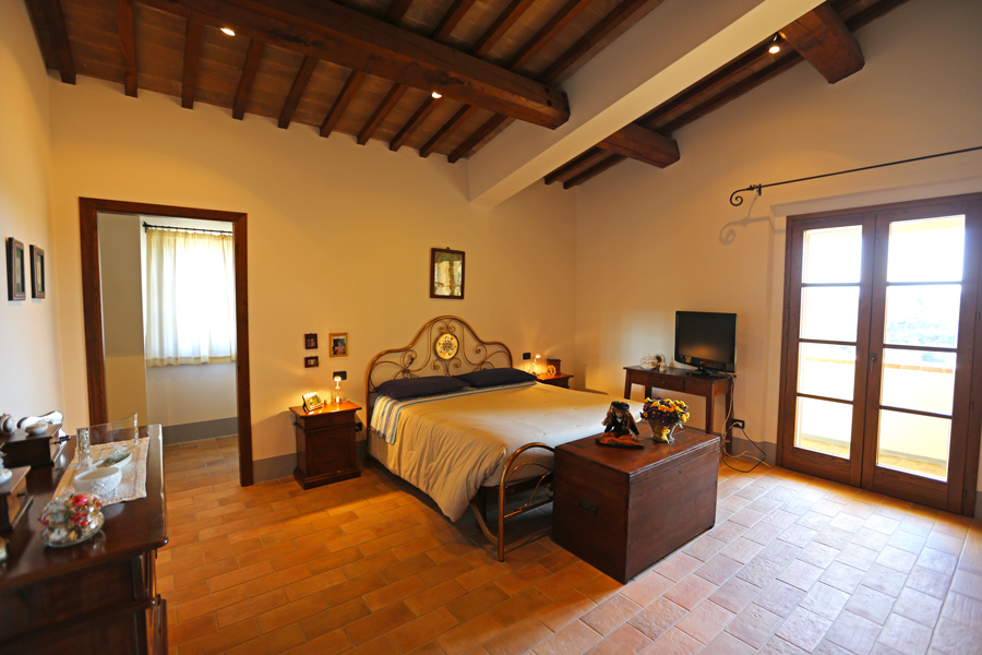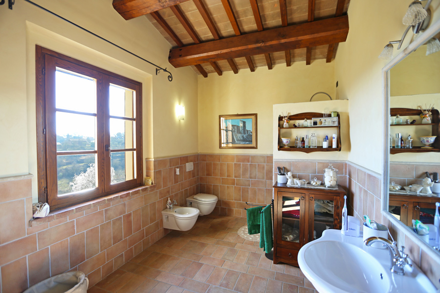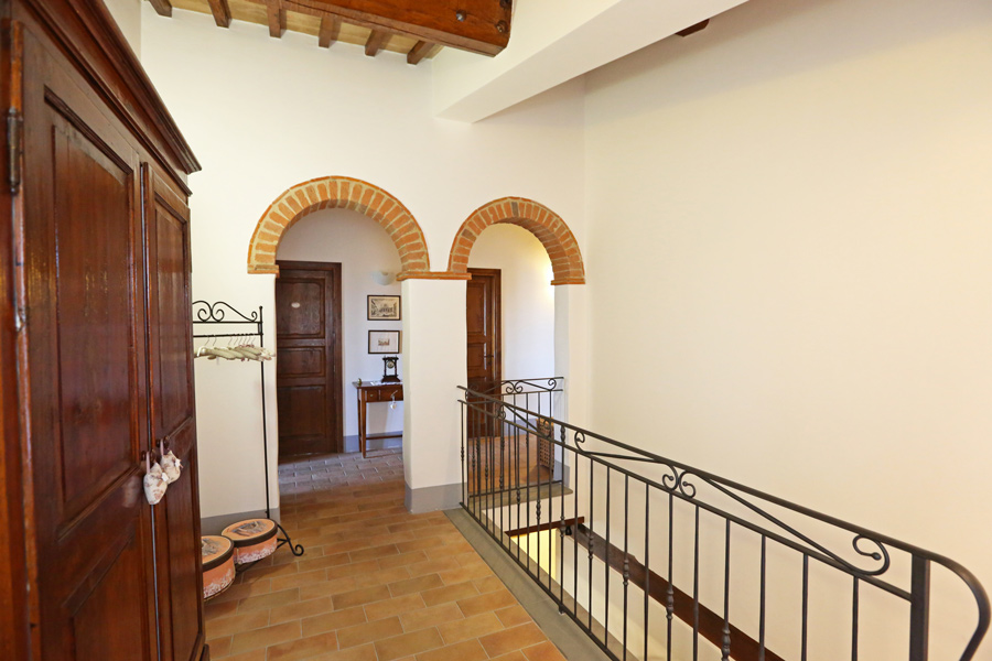 On the first floor, there is a sleeping area with 3 double bedrooms and 2 bathrooms, one is en suite. The loggia, accessible form the master bedroom, overlooks the Umbrian countryside.