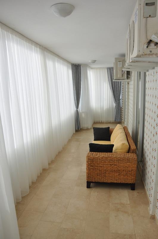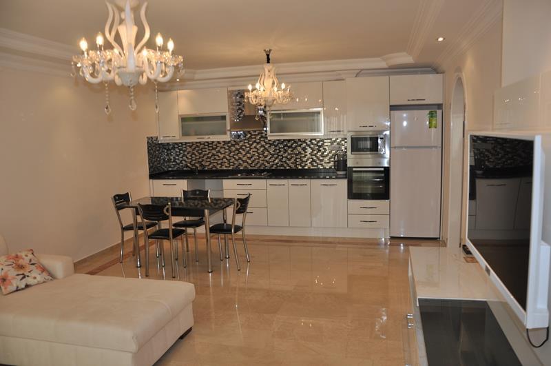 Квартира 2+1, 2 спальни, гостиная, кухня открытого типа, 2 совмещенных санузла (джакузи), прихожая, большой остекленный балкон с видом на море и Аланию. Квартира в отличном состоянии, с капитальным ремонтом. Полностью меблирована и оборудована бытовой техникой. Комплекс расположен в Махмутларе, на первой береговой линии. Инфраструктура комплекса: • Открытый бассейн • Фитнесс-зал • Сауна • Консьерж • Парковка • Спутниковое телевидение • Интернет • Сад