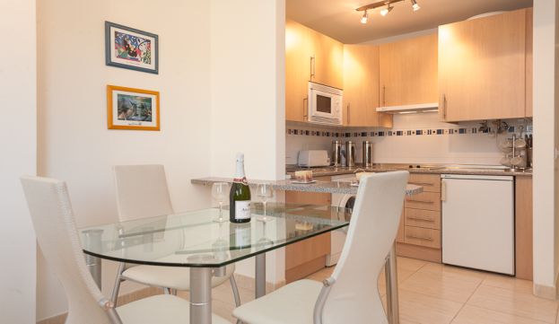 Продаются солнечные апартаменты в Михасе на побережье Коста дель Соль. Стильные и комфортные апартаменты включают в себе спальню, ванную комнату и кухню, совмещенную с гостиной. Нежные тона мебели, удобная планировка, дорогие качественные стройматериалы создают уют в каждой комнате.