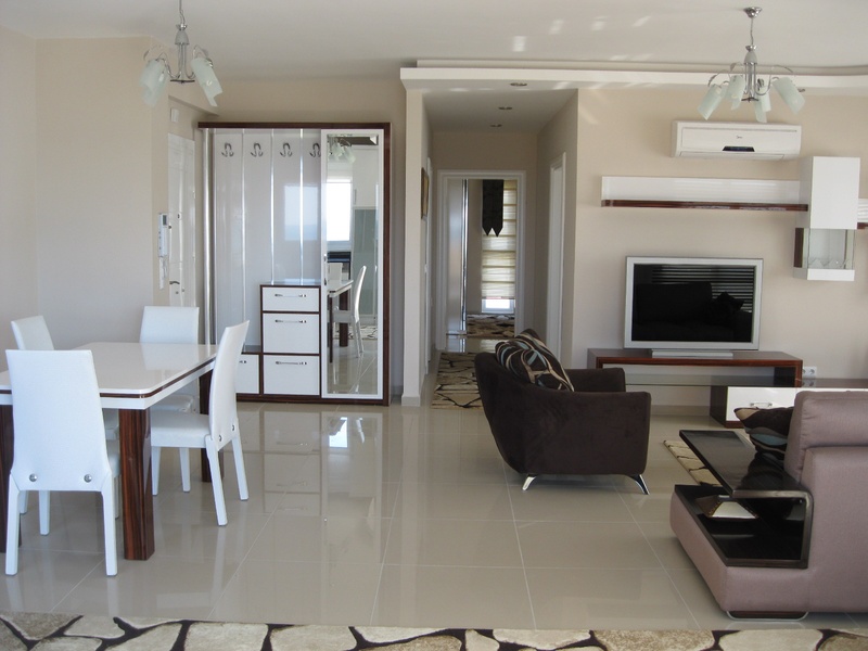 Die Wohnung hat 3 Zimmer (2 Schlafzimmer und 1 Wohnzimmer mit offener Einbauküche) liegt im Mehrfamilienhaus mit 10 hochwertigen Wohnungen in Alanya im schönen Ortsteil Kestel. Die Wohnung st sehr hochwertig ausgestattet und qualitativ an den deutschen Standard angelehnt. Die Wohnung kann stufenlos über einen Aufzug erreicht werden. Auf dem Boden wurden großflächige ca. 60 x 60 cm Fliesen verarbeitet. Der Flur und weite Bereiche sind mit Marmor versehen. In die Decke wurde indirekte Beleuchtung eingelassen und die Wände sind gestrichen. Eine neue top moderne Küche ist im Kaufpreis enthalten. Die Wohnung verfügt über 2 sehr großzügige Terrassen, Im Garten befindet sich für die Hauseigentümer ein Swimmingpool.