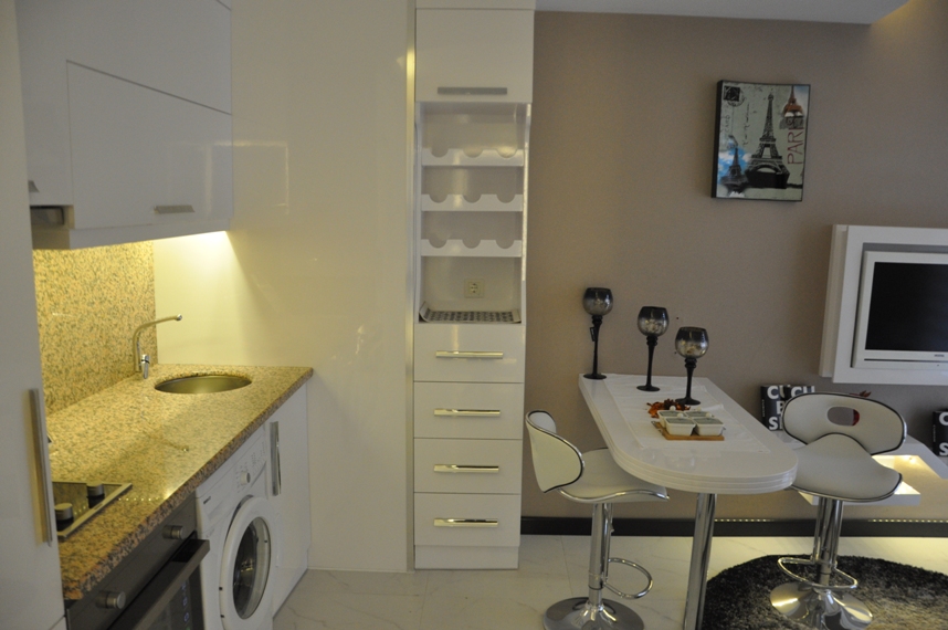 Новый жилой комплекс в стиле 5-ти звездочного отеля в самом сердце Алании. Расположен в шаговой доступности от различных магазинов, баров и ресторанов, аптек. Всего в 10 минутах ходьбы располагается знаменитый песчаный пляж Клеопатры. Комплекс состоит из двух блоков и предлагает квартиры студии, квартиры с одной спальней и пентхаусы с двумя спальнями. Квартиры полностью меблированы и оборудованы бытовой техникой. Комплекс имеет богатую инфраструктуру и включает: Большой плавательный бассейн с водными горками Бар у бассейна Закрытый бассейн с подогревом Турецкая баня Финская сауна Парная Массажные комнаты Фитнес-зал Боулинг Библиотека Кинотеатр Детская игровая комната, плейстейшн Лобби кафе Зимний сад Круглосуточная охрана