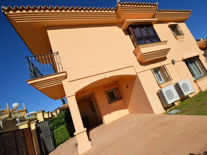Diese schöne Ecke Stadthaus befindet sich in einer privaten community mit 2 pools in Riviera del Sol. Das Haus hat 196 m2 von einem privaten Garten von 15 m2 und Parkplatz. Im Erdgeschoss gibt es eine voll ausgestattete Küche, ein WC, und ein Wohnzim...