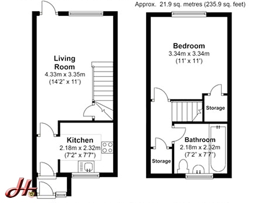 Zweifamilienhaus 50 m2 / Stockwerke: 2 / Anzahl der Zimmer: 2