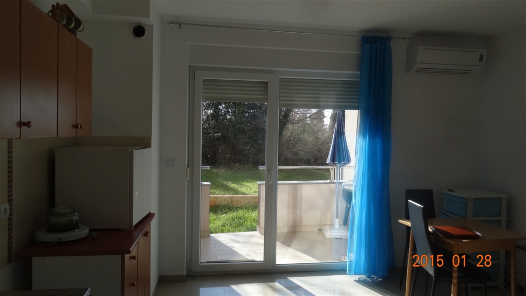 Wohnung von 66 m2 liegt im Erdgeschoss des Wohngebäudes. Wohnung ist in zwei Teile geteilt, zwei kleiner Wohnungen (jede mit eigenen Eingang). 1. Wohnung besteht aus Halle, einen Zimmer, Badezimmer und Terrasse die zum Garten führt und Klimaanlag...
